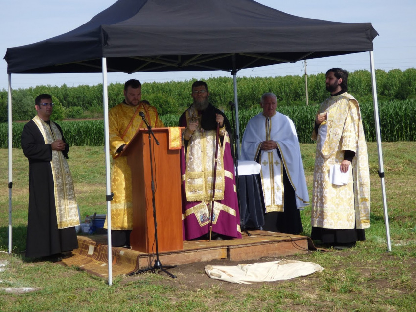 A templom alapkövét Orosz Atanáz püspök áldotta meg. „Szent Péter és Pál ünnepén világosan látjuk, mit jelent a kétezer éve lerakott és a szívünkben, közösségünkben is meglévő szikla – mondta a homíliában a püspök. – Jézus tanítása az a szikla, amely lehetővé teszi a maradandóságot ebben a folyton változó világban. Péter lett a megtestesítője a sziklaalapnak, és azóta is rá építve működik az Anyaszentegyház. Ebben az Egyházban élünk és hiszünk mi is. Jézus Krisztus tanítására, Péter apostol sziklaalapjára kezdjük mi is a templomépítést. Fennmaradásunk záloga az ehhez való ragaszkodás, az a fajta közösségépítés, amely szilárd alapokon nyugszik, és ezért maradandó, időt álló közösséget jelent.”