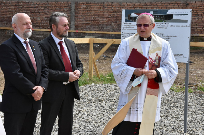 Az alapkőletételi ünnepség igeliturgiával kezdődött az óvoda szomszédságában lévő Szent József-templomban, ahol Bărbuț Péter plébános házigazdaként köszöntötte a jelenlévőket. Böcskei László nagyváradi megyéspüspök a felolvasott evangéliumi részt követően szólt az ünneplő közösséghez. A munka, az elköteleződés és összefogás fontosságát emelte ki, és háláját fejezte ki, amiért az anyaország segíti a közösséget ezekkel a projektekkel – utalva az elmúlt héten Nagyváradon bemutatott templomfelújítási programra is.