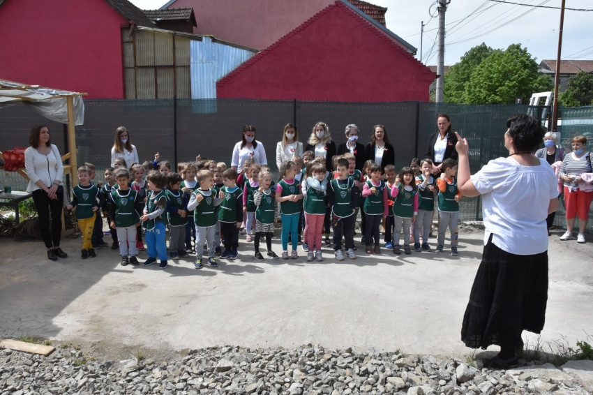 Az óvodások zárásként Kiss-Király Tünde óvónő irányításával énekeltek még néhány éneket ott, ahol majd az új épületrész áll, melyben közel 130 magyar anyanyelvű gyermek kaphat korszerű nevelést.