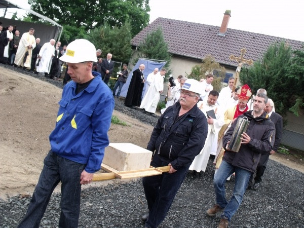 Az alapkő feliratát Molnár Zsolt plébános olvasta fel az egybegyűlteknek: „Christus Iesus, caput anguli: Krisztus Jézus, a szegletkő”, majd hozzátette: „A mi szegletkövünk Jézus, és jó már az alapkövet is úgy letenni, hogy ezt tudjuk. Az alapkő olyan, mint a templom magja: elvetjük, és ápoljuk, hogy kinőjön belőle a templom.”