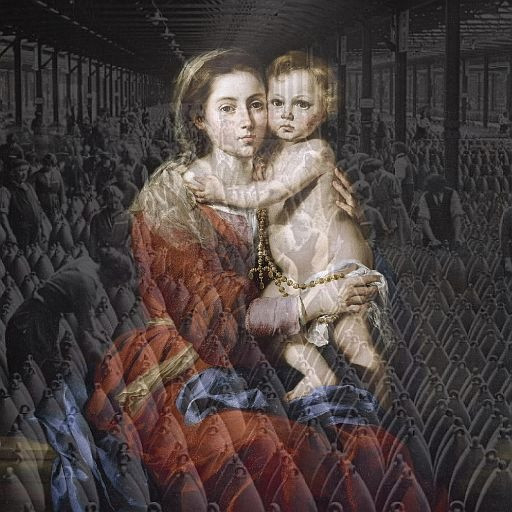 Ha felidézzük magunkban a galamb, mint jelkép szentírási helyeit az özönvíztől a Szentlélek figurális ábrázolásának hagyományáig, eljuthatunk a békét megtestesítő madárig. A galamb a sajátos, háborús körülmények között sem lesz más, mint az ember segítője, s néha áldozata. Mária és a gyermek Jézus megjelenése művészettörténeti idézetek, gesztusok, csendéletté szerveződő attribútumok révén az imádságról, a könyörgésről, az oltalomról, a megváltásról indít vizuális elmélkedést. A kérés és a hála kifejezésének emberi szándéka köti a frissen készült fogadalmi tárgyak, illetve azok öntőformáinak csoportját a Madonna-képekhez.