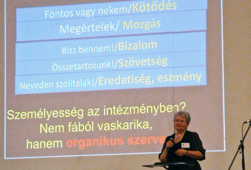 Az az intézmény életképes, amely a rendet az élet szolgálatába állítja, amelynek van jövőképe, fejleszti az egyéni készségeket, azokat ösztönzi, tehát szomjúságot teremt, megvan hozzá a szükséges szellemi és anyagi erőforrása, és mindezt hétköznapi cselekvésre is lefordítja. „Semmi sem szabadabb, mint amit a szeretet rendez el, és semmi sem rendezettebb, mint amit a szeretet köt össze” – zárta előadását a neveléskutató.