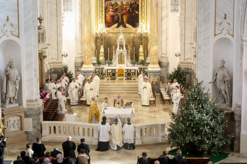 Bábel Balázs köszöntötte a székesegyházban megjelenteket, elsőként a pécsváradi vendégeket, élükön Antal Géza apát-plébánossal. Asztrik érsek Pécsváradról, az általa alapított bencés apátságból érkezett egykor Kalocsára.