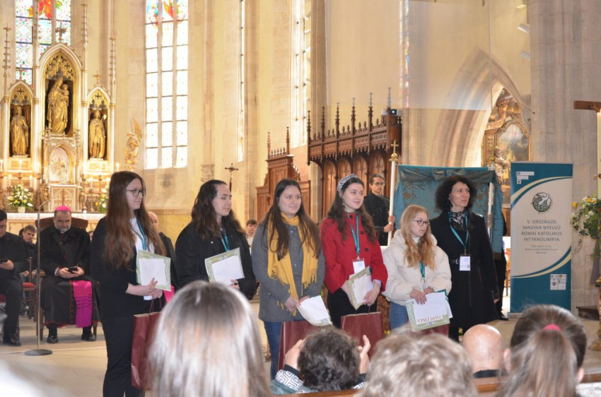 A szentmisét záró főpásztori áldás után Schuller Hajnal, a házigazda és szervező Báthory-líceum igazgatója vezette a hittanolimpia zárórendezvényét, mely köszöntőbeszédekkel és díjkiosztóval folytatódott.