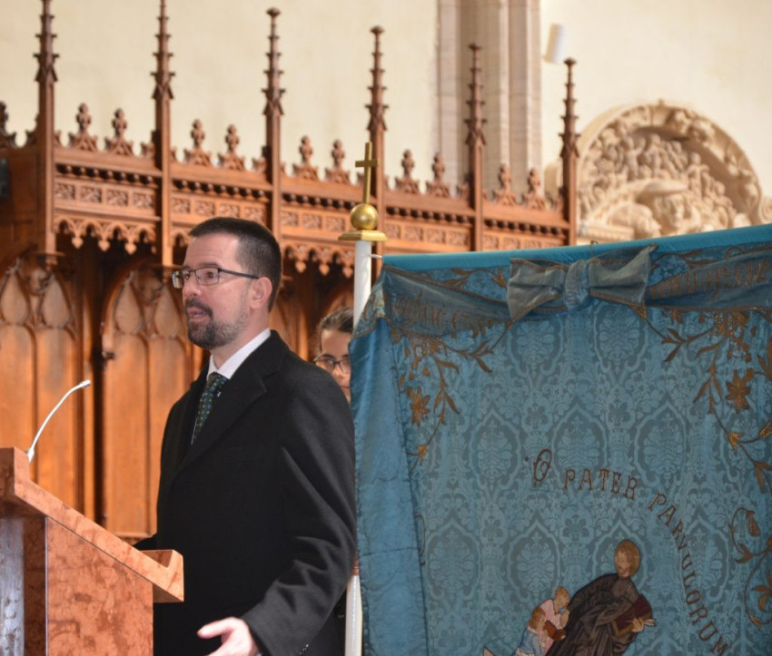 Felidézte a kolozsvári templom sok évszázados történetét, a templomépítést kezdeményező plébánost, a templomépítés támogatására íródott, a pápai udvarból érkezett levelet, amelynek másolata ma is látható a bejárat mellett; emlékeztetett a nehézségekre, a pusztító tűzvészre, földrengésre, toronyomlásra és a falak által látott számtalan történelmi, egyházi eseményre, Mátyás király keresztelőjére, országgyűlésekre, fejedelemválasztásokra, s nem utolsósorban Márton Áron püspökké szentelésére, amely szintén a templomban zajlott.