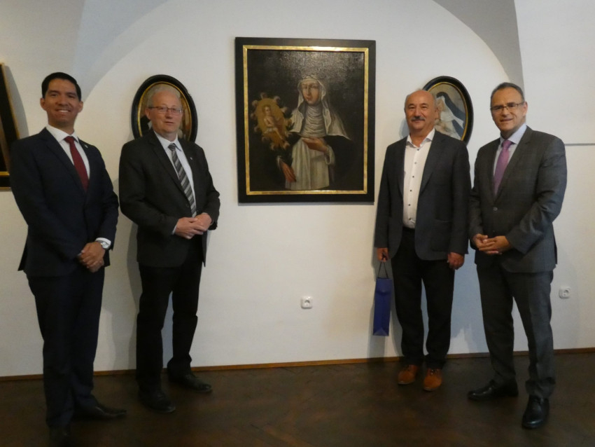 A Domonkos Rendtörténeti Gyűjtemény kiállításán egy különösen szép barokk festmény látható a rend női ágának egyik – elsősorban spanyol nyelvterületen – kiemelten tisztelt szentjéről, Limai Szent Rózáról. A napokban Vasváron járt Edgard Pérez Alván, a Perui Köztársaság magyarországi nagykövete, hogy megtekintse a képet és tisztelegjen Szent Róza emléke előtt.