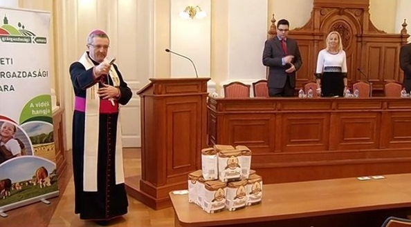 Az idei „Magyarok Kenyere” programot lezáró adományozó napon a szombathelyi megyeházán Veres András megyéspüspök áldotta meg a lisztet, a gyermekek pedig verssel, tánccal köszönték meg a felajánlást.