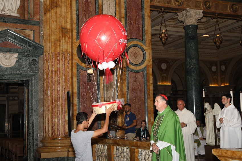 A szentmise különösen megható pillanata volt a felajánlás, amelyben egy hőlégballon-másolat jutott szerephez. Ez a kis hőlégballon szimbolikusan minden résztvevő álmait vitte fel az égbe, kézzelfoghatóan megjelenítve azokat a reményeket és törekvéseket, amelyeket a fiatalok gondolatban a szinódusra magukkal hoztak.