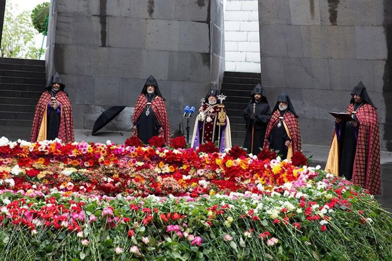 A népirtás mai évfordulója, az áldozatokra való megemlékezés a koronavírus-járvány miatt másképp zajlik, mint a korábbi években, évtizedekben. Az ilyenkor tízezrek által látogatott jereváni központi genocídium-emlékműhöz és örökmécseshez a mai nap csak az ország politikai vezetői, az ecsmiadzini katholikosz és püspökök helyeznek el – az évforduló alkalmából 105 ezer szál – virágot, míg a templomok harangjai este 9 órakor egyszerre kondulnak meg mindenhol, közös online imára és megemlékezésre hívva az ország lakosságát és a diaszpórában élőket.