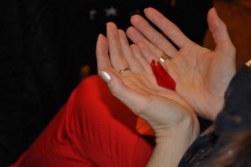 Katalin nővér előadása elcsendesedéssel zárult. Minden résztvevő kapott egy kis szív alakú lapot a kezébe, és a nővér gondolataival kísérve megélhették saját gyászukat.