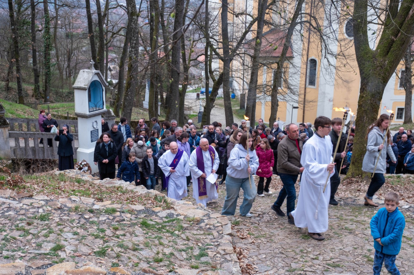 A liturgia után a bazilika mögötti domboldalon a résztvevők végigjárták Krisztus keresztútját.