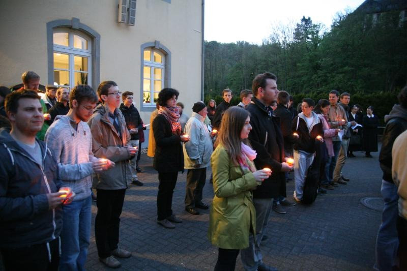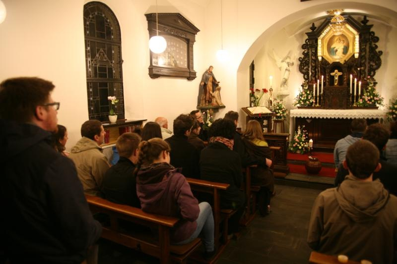 A diakónusszentelést megelőző este a magyar fiatalok együtt imádkoztak az ősszentélyben, azon a helyen, ahol száz évvel ezelőtt létrejött a Schönstatt mozgalom. Az imát követően kötetlenül lehetett beszélgetni egymással és a Schönstatt Atyák közösségének tagjaival.