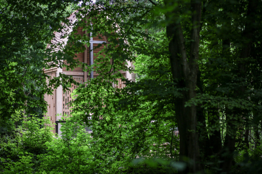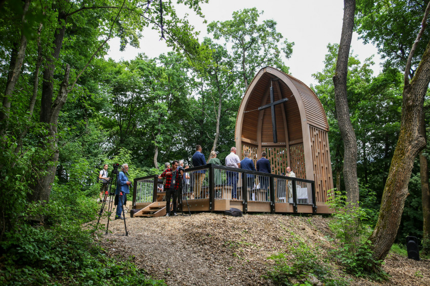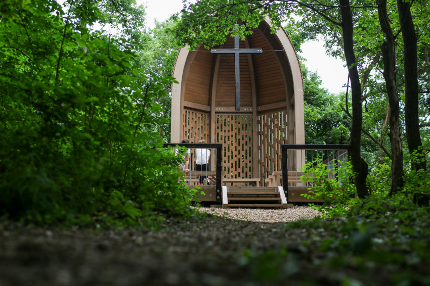 A 14. században kezdtek itt kolostort építeni a fehér barátok. A Szent Mihály-templom és -kolostor a történelem viszontagságai közepette megsemmisült, falmaradványait betemette a föld. Az egykori templomfalak alapjára azonban nemrégiben szentélyt építettek a természet templomában. A nyolcszög alakú építmény vörösfenyőből készült, csúcsíves tartószerkezetének középpontjában kereszt függ, amely az ég felé emeli az idelátogató tekintetét. Oltárasztal, a hajóban néhány pad, körben pedig fák: óriástölgyek és juharok. A nyitott építmény szerényen bújik meg az erdő sűrűjében. Vörösné Baracsi Erzsébet erdőmérnök, belsőépítész tervező és Borsos Balázs, illetve Borsos Barna erdőmérnök kivitelezők megtalálták a tájba illő és a pálos múltat megidéző anyagot és formát.