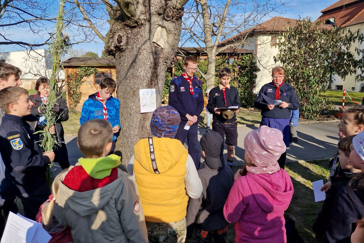 A cserkészek a sok játék és a finom ebéd után a hagyományos, 14 állomásos keresztút stációin elmélkedtek.