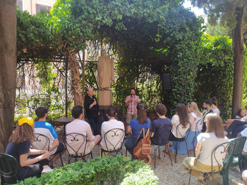 A fiatalok meghallgathatták Eraldo Affinati olasz író és tanár tanúságtételét is munkájáról és hitéről. Eraldo elismert a migránsoknak kifejlesztett újfajta olasz nyelvtanítási módszeréről.