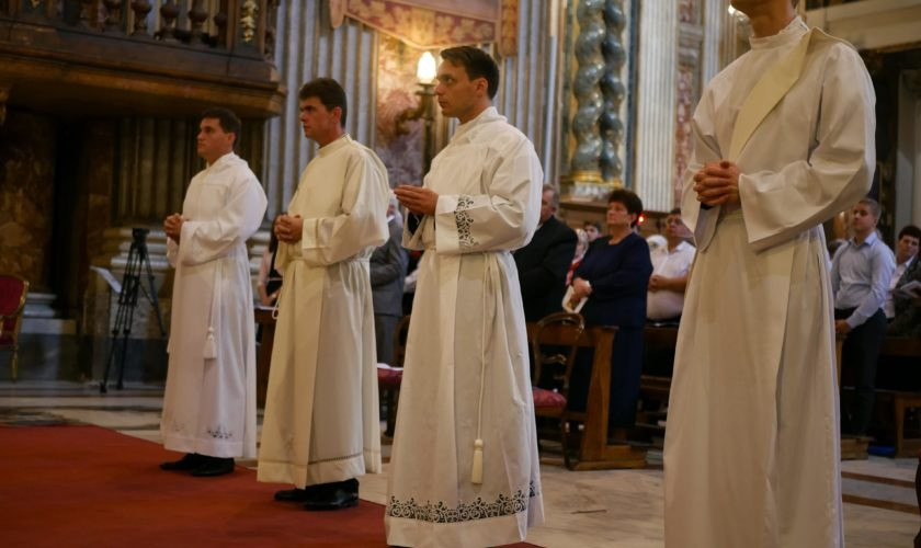 A négy jelölt három éven át volt a római Collegium Germanicum et Hungaricum (Német–Magyar Kollégium) lakója, az itteni növendékek pappá és diakónussá szentelése hagyományosan az Örök Városban történik. A szertartást minden évben valamelyik szentelendő főpásztora végzi.