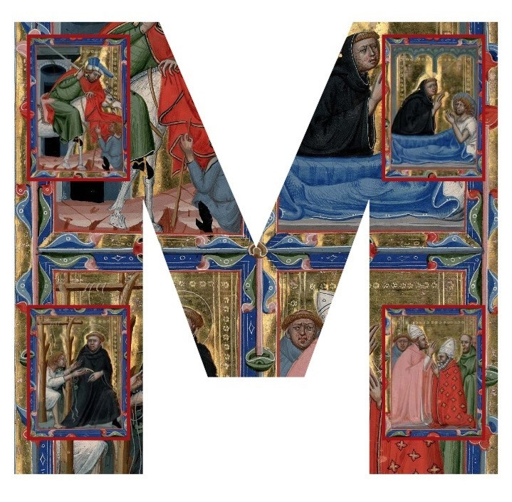 A betűk elülső oldala egy-egy magyar vagy olasz képzőművész alkotásának kinagyított fényképébe van „felöltöztetve”. Az első betűn (M) a – részben a Vatikáni Könyvtárban őrzött – Magyar Anjou-legendárium című 14. századi kódex miniatúrái láthatók Szent Márton életének jeleneteivel.