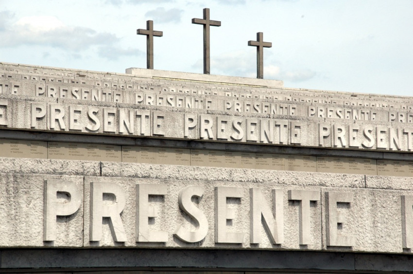 A képen a következő felirat olvasható: olaszok és magyarok harcoltak ezeken a hegycsúcsokon hősiesen, majd testvérekké váltak a halálban.
