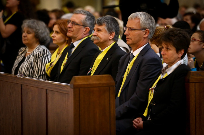 A szentmisén Székely János segédpüspökkel koncelebrált Pápai Lajos győri püspök és Tamás József gyulafehérvári segédpüspök. Jelen voltak Kövér László házelnök, Soltész Miklós egyházi, nemzetiségi és civil társadalmi kapcsolatokért felelős államtitkár és Gyurcsík Iván varsói magyar nagykövet.