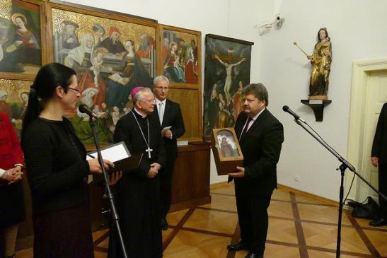 A krakkói érseki palotában nyílt kiállításon ötvenöt Mária-ábrázolást láthatnak az érdeklődők: a világ különböző részein élő magyar művészek alkotásait. A kiállított művek különböző felfogásban, de nagyon szépen mutatják be Szűz Mária tiszteletét – nyilatkozott a tárlatról Soltész Miklós, az Emberi Erőforrások Minisztériumának egyházi, nemzetiségi és civil társadalmi kapcsolatokért felelős államtitkára, aki részt vett a megnyitón is.