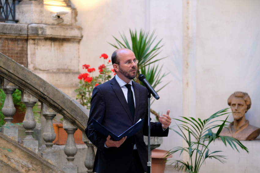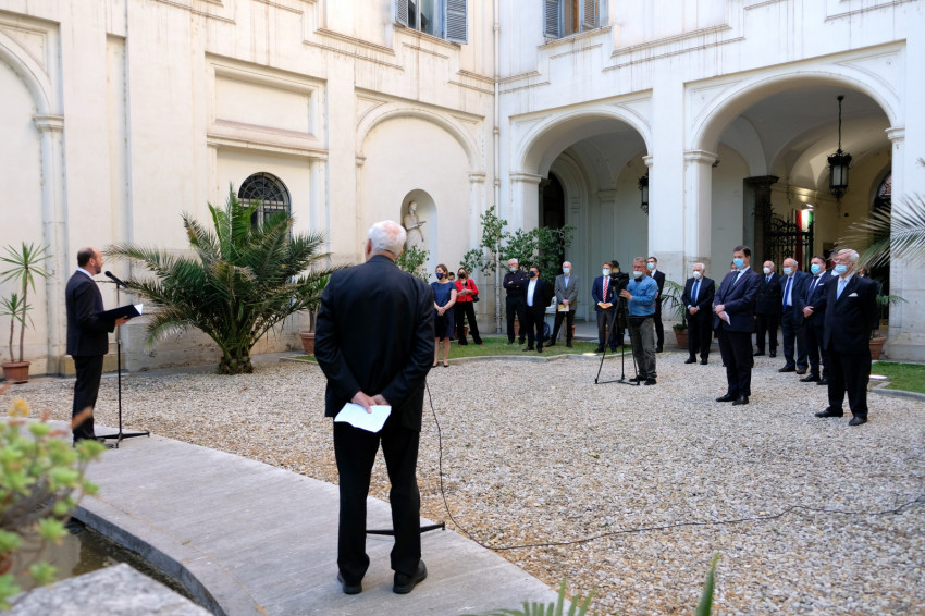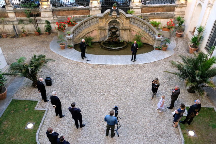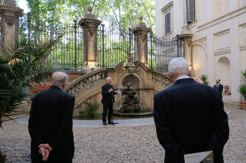 Beszédének elején háláját fejezte ki Erdő Péter bíboros, esztergom-budapesti érseknek, hogy támogatta a Ne féljetek! című kortárs művészeti kiállítás megrendezését Rómában, amelynek célja, hogy felhívja a figyelmet a Nemzetközi Eucharisztikus Kongresszusra, amelyre a magyar fővárosban kerül sor 2021. szeptember 5. és 12. között.
