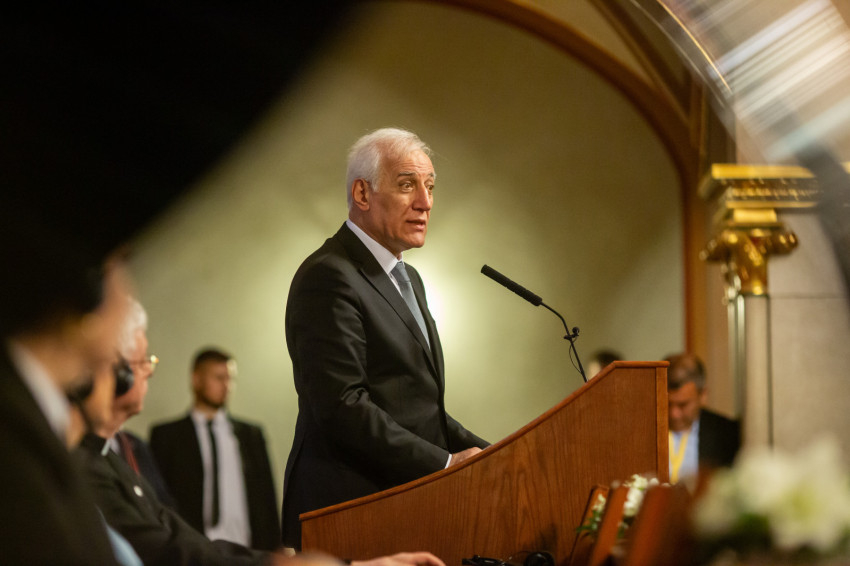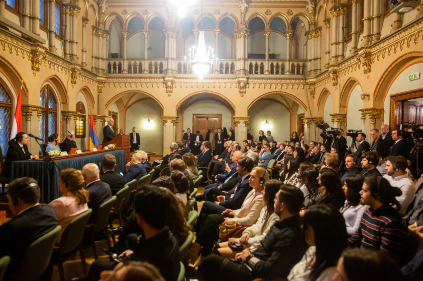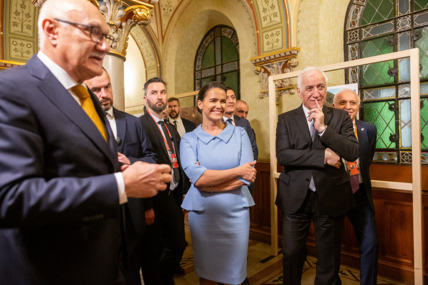 Vahagn Hacsaturján államfő megemlékezett a jereváni Örmény Állami Pedagógiai Egyetem és a Pázmány Péter Katolikus Egyetem többéves kapcsolatáról. A két intézmény 2016-ban írt alá kétoldalú együttműködési megállapodást, és a PPKE-n Armenológiai Tanszék jöhetett létre Kovács Bálint vezetésével. Az államfő méltatta a tanszékvezető kiemelkedő tevékenységét, és kifejezte köszönetét az államközi kapcsolatokért. Mint mondta, bár nincs annyira gazdag kincsünk, mint a szomszéd országoknak, szellemi kincsünk, kultúránk van. A magyar és az örmény nemzet is igyekszik a kultúrát továbbvinni, hiszen a tudomány és a tudás a legfontosabb, anélkül nem lehet fejlődni. Az államfő kifejezte bizalmát, hogy a két nemzet együtt tud működni továbbra is az oktatás, a tudomány továbbfejlesztése érdekében. Mint mondta, megteszünk mindent a békéért, felülemelkedünk a rosszon.