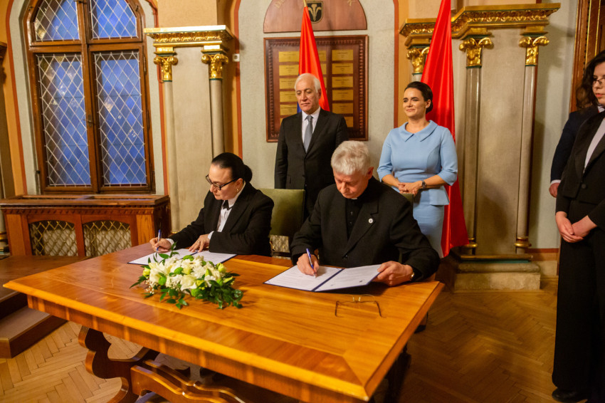 Kuminetz Géza, a PPKE rektora és Szrbuhi Raphik Gevorgjan, az Örmény Állami Pedagógiai Egyetem rektora aláírták az államfők jelenlétében azt a dokumentumot, mely a két egyetem közötti nyolc éve fennálló megállapodást tovább erősíti. Ebben rögzítik a jereváni egyetemen létrejövő Magyar Történelem és Kultúra Központ működésének és szakmai irányításának követelményeit, valamint a Pázmány Péter Katolikus Egyetem ehhez kapcsolódó szerepét. A központ célja a magyar történelem és kultúra oktatása, népszerűsítése Örményországban, a meglévő kétoldalú kapcsolatok további erősítése.
