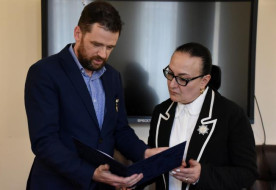 Az Örmény Állami Pedagógiai Egyetem rektora felolvasta a tudományos tanács határozatát, a díszdoktori címet igazoló dokumentumot, amelyben kiemelte, Kovács Bálint úttörő munkatárs a kelet-európai armenológiai kutatás területén, majd átadta az elismerést az örmény egyetem új díszdoktora számára.