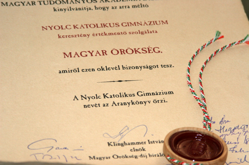 S végül köszönet a mostani elismerésért: köszönet, hogy iskoláinkat a Magyar Örökség díjra méltatták.