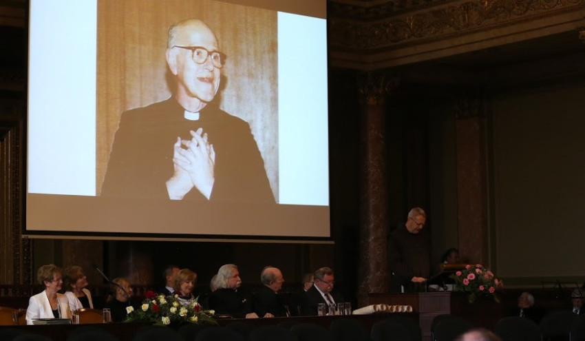 A magyar kultúra és az egyházi tudomány nemzetközi hírű kiválóságát ismerjük el és tiszteljük meg Nemeshegyi Péter atya személyében – hangsúlyozta Várnai Jakab, majd emlékeztetett: az egyházüldözés miatt magyar jezsuiták egész nemzedéke külföldön vállalt szolgálatot és lett a magyar tudományosság nagykövete a világban.