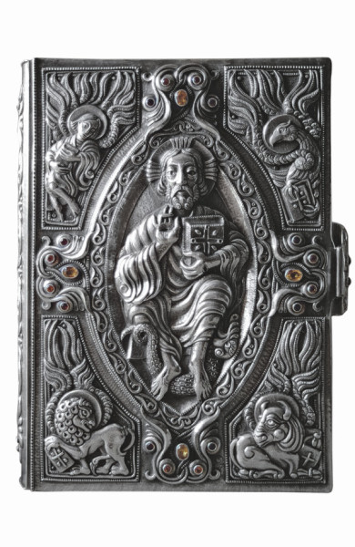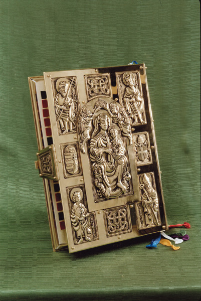 Az esztergomi evangéliumoskönyvet (evangeliáriumot) is használni fogják a szentmise során. Az előlapján egész alakos Maiestas Domini mandorlában, körülötte a négy evangélista szimbóluma. Hátlapján pedig a Magyarok Nagyasszonya mellett négy magyar szent, István, László, Adalbert és Kőrösi Márk kassai vértanú alakja látható.