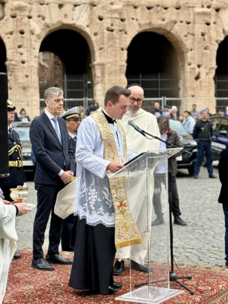 A Colosseum előtti téren a városi rendőrség, tűzoltóság, mentőszolgálat tucatnyi járműve sorakozott fel. Mellettük álltak a csendőrség, a pénzügyőrség, a polgári védelem, valamint az Olasz Autóklub (ACI) járművei. Az ünnepi áldáson jelen voltak Vatikán Állam járművei is. Törő András az autók előtt elhaladva áldását adta a járművekre és vezetőikre.