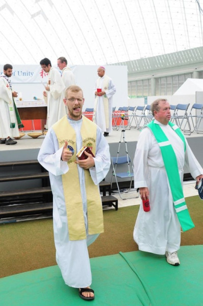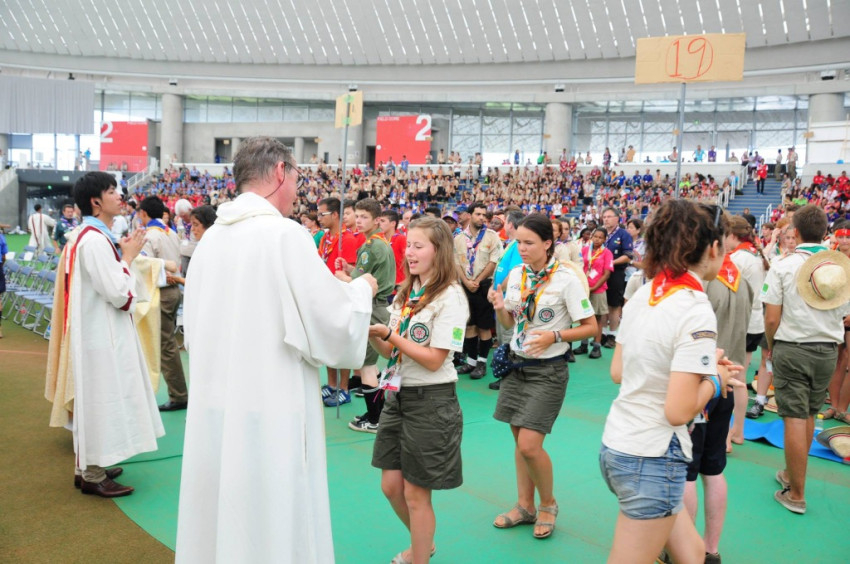 A magyar csapattal utazó egykori cserkész aztán pap, aztán cserkészpap Hodász András – ahogy a cserkészek nevezik: Ifatya – blogjában számol be papi szolgálata lehetőségeiről a táborban. Ír arról is, hogy a 40 ezer vidám fiatal fesztiválhangulatú táborában hogyan próbál alkalmat teremteni a csendre, imára, próbálja jelenvalóvá tenni az istenkapcsolatot.