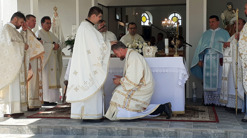 „Ma gyönyörű ünnepünk van: a mai vasárnap megszentelése által a Szentlélek erejének mennyei kiáradását ünnepeljük, azt az ajándékot, mely kiárad a papokra és mindazokra, akik erre a hivatásra készülnek. Ma boldogsággal teli eseményt élhet meg mind a közösség, mind egyházunk: egy pap felszenetelését” – fogalmazott szentbeszédében Vasile Bizău, aki magyar nyelven is köszöntötte a híveket. A püspök a papi hivatás különleges kegyelméről is beszélt: „Ez Isten ajándéka. Úgy kell tekintenünk a papság titkára, mint ami az égből, Istentől való hivatás.” A pap küldetése az, hogy közössége számára Krisztust jelenítse meg: „A pap az emberek közül választatott ki, Krisztus nevében Krisztust kell jelenvalóvá tennie közösségében. Krisztus nevében kell tanítania és hirdetnie az evangéliumot. A pap személyében Krisztus személye minden időben jelenvalóvá válik, így ma is közöttünk. Az a megbízás és misszió, melyet Krisztus apostolaira hagyott, hogy tegyenek tanítvánnyá minden népet, és gyógyítsák meg a betegségeket a nép között, egy pap számára napjainkban is érvényes küldetés és feladat.”