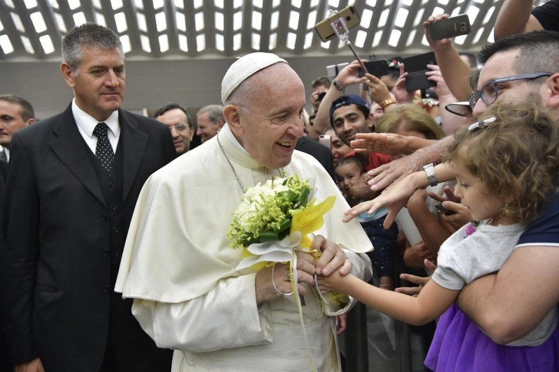 A magyar delegáció tagjai Dombi János mellett Kriston Pál, a győri Egyházmegyei Katolikus Iskolai Főhatóság igazgatója és Henczel Szabolcs, a soproni Szent György-plébánia plébánosa voltak. Dombi János a soproni Szent Pál Katolikus Szakkollégium mellett egy hátrányos helyzetű családokat támogató alapítványt is vezet. Az alapítványt Henczel Szabolcs fogadta be a plébániára, helyet adva adományosztó tevékenységüknek. A magyar csoport tagjai az általános kihallgatáson a Szentatyához közel, az első sorokban kaptak helyet, és egy különleges mécsesadagoló-automatát ajándékoztak Ferenc pápának.