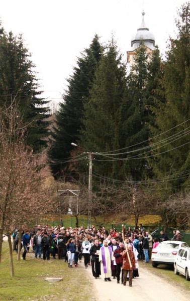 Gyerekek, fiatalok, felnőttek és idősek, román és magyar anyanyelvűek együtt, plébánosaik, papjaik kíséretében indultak 11 órakor a borsabányai római katolikus templomtól, kereszttel a Kálvária-kápolna felé.