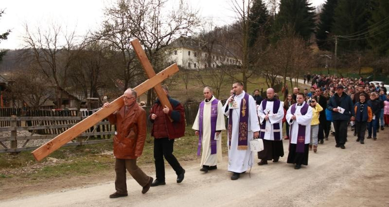 A keresztutat járók a rózsafüzért két nyelven imádkozva értek el a stációkhoz, amelyeknél meg-megállva Krisztus szenvedéséről és a mai kor emberének viszonyulásáról elmélkedtek. Az imák és gondolatok felváltva magyar és román nyelven hangzottak el.