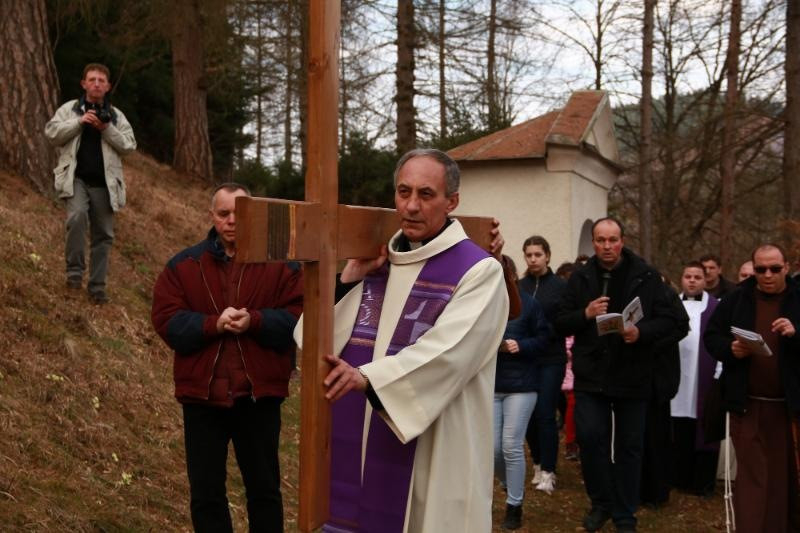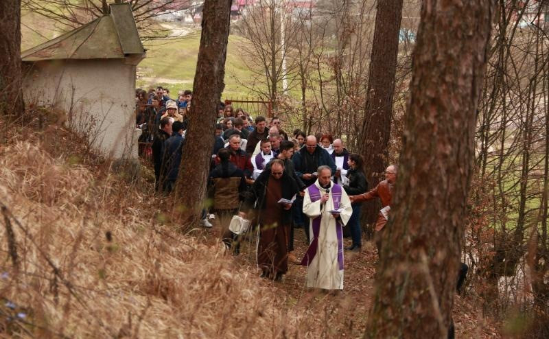 A keresztúti ájtatosság végén, felérve a Kálvária-kápolnához, a résztvevők elimádkozták a búcsúnyeréshez szükséges imákat, majd Anderco Ottó helyi plébános szólt a résztvevőkhöz.