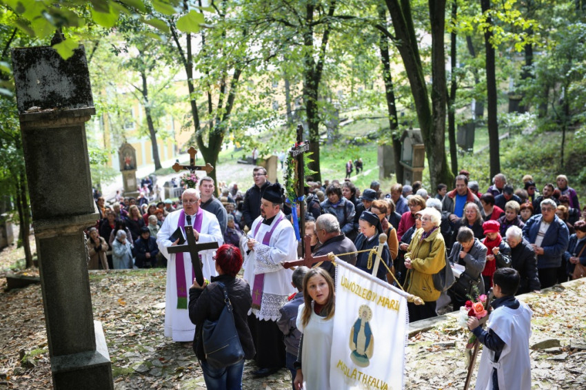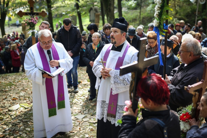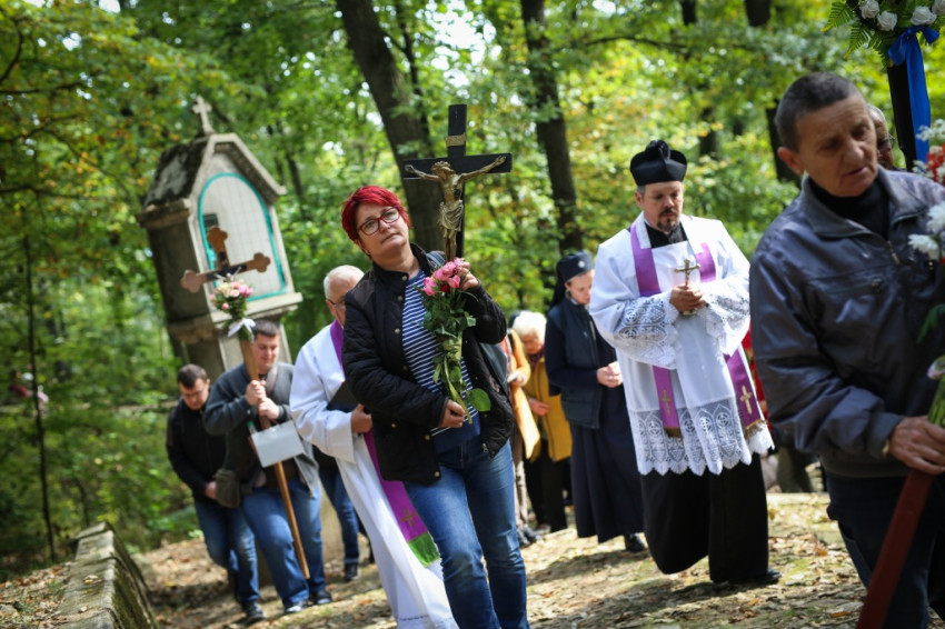 A szentmisét követően a búcsút ünneplők keresztutat jártak a templom mögötti dombra vezető stációknál.