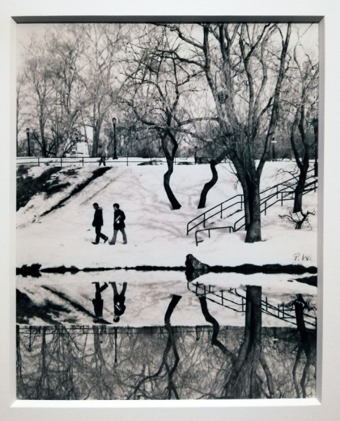 A Szépművészeti Múzeum kiállítása rámutat arra, hogy a fotó készítésének mennyire fontos része – a képkivágáson túl – a kontraszt, a ritmus és az ellentéthatás (formai, nagyság- és irányellentét, sötét és világos kontrasztja stb.). A merész képkivágásra jó példa Kálmán Béla cím nélküli kompozíciója. Zebrán áthaladó gyalogosok láthatók a kőkeményre exponált felvételen. Annyira erős a kontraszt, hogy szinte már grafikai hatást kelt. A kép Chicagóban készült az 1960-as évek végén. Kálmán neve itthon kevésbé ismert; ő 1956-ban ment ki Amerikába, Chicago és New York után Bostonban telepedett le, ahol saját műtermet nyitott, és sikeres reklámfotós lett.