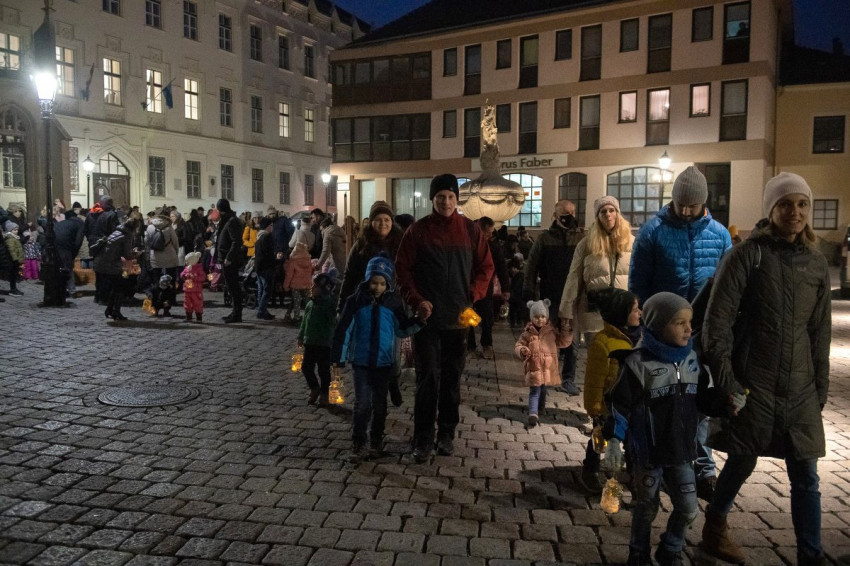 Nagy öröm volt a soproni Szent Orsolyában, hogy Szent Márton ünnepén ismét együtt lehettek a családok, amire a gyermekek nagy örömmel, lelkesedéssel készítették kis lámpásaikat. Hagyományaikhoz híven a történelmi belvárosban, az Orsolya téren tartották ezt a szép emlékezést. A délutáni szürkületben meggyújtották lámpásaikat, és ebből, valamint a gyermekeink szívéből, szeméből áradó fénnyel sétáltak végig a sötét belváros utcáin. Útjukon Márton lovag kísérte őket. Visszatérve az Orsolya térre a templom előtt megelevenedett Szent Márton története: katonaélete, jószívű tettei, megkeresztelkedése, püspökké szentelése. Az előadás után Kovács Gergő atyával bevonultak a templomba, ahol közösen énekeltek és imádkoztak. Szent Márton élete példaértékű mindenki számára. Ébressze fel bennünk a jólelkűséget, segítőkészséget, felebaráti szeretetet, hogy Szent Márton-i lelkülettel tudjunk egymás felé fordulni, és szeretetünkkel megajándékozni a másikat!