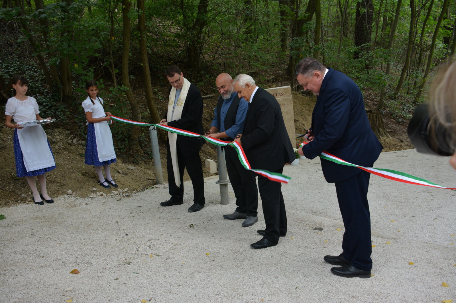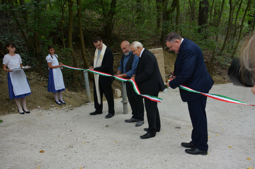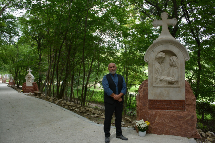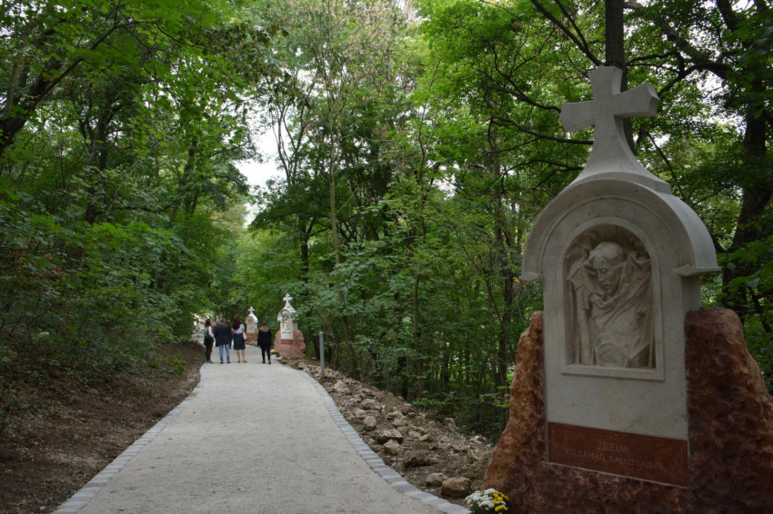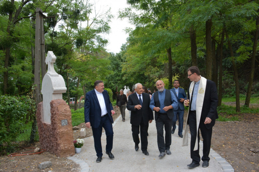 Párkányi Raab Péter szobrászművész azt hangsúlyozta, hogy örömút nincs keresztút nélkül. „Egyéni életünkben mindannyian végigjárjuk saját stációinkat, ami kinek könnyebb, kinek nehezebb. De emberi minőségünket a stációink bejárása és az út el nem hagyása határozza meg” – hívta fel rá a figyelmet, majd ünnepélyesen átvágták a nemzeti színű szalagot, és végigsétálva a stációk mentén a tartományfőnök megáldotta őket.