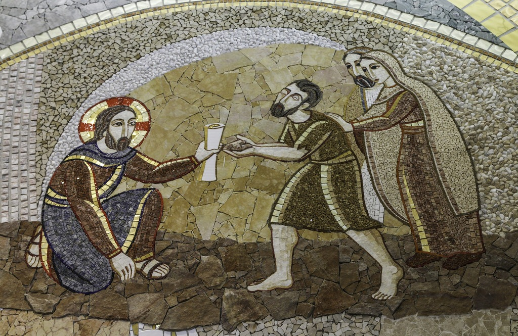 Amikor Jeruzsálembe menet Jézus Jerikó városához közeledett, egy vak koldus ült az út szélén. Amint ez meghallotta, hogy sokan vonulnak arra, megkérdezte, mi történik. Mondták neki, hogy a názáreti Jézus jön errefelé. Erre kiáltozni kezdett: „Jézus, Dávid fia könyörülj rajtam!” Akik elöl mentek, csitították, hogy hallgasson. De ő annál jobban kiáltotta: „Dávid fia, könyörülj rajtam!” Jézus ekkor megállt, és szólt, hogy vezessék hozzá. Amikor odaért, megkérdezte: „Mit akarsz, mit tegyek veled?” A vak könyörgött: „Uram, hogy lássak!” Jézus így szólt hozzá: „Láss! Hited meggyógyított téged.” Azonnal visszanyerte látását. Dicsőítette Istent, és követte őt. Ennek láttára az egész nép áldotta Istent.