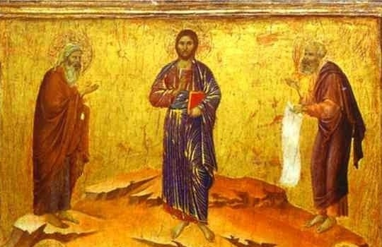 Abban az időben Jézus maga mellé vette Pétert, Jakabot és Jánost, és egyedül velük fölment egy magas hegyre. Ott elváltozott előttük. Ruhája olyan ragyogó fehér lett, hogy a földön semmiféle kelmefestő nem képes így a ruhát kifehéríteni. Egyszerre megjelent nekik Illés és Mózes, és beszélgettek Jézussal. Péter ekkor ezt mondta Jézusnak: „Mester! Olyan jó nekünk itt lennünk! Készítsünk három sátrat: neked egyet, Mózesnek egyet és Illésnek egyet!” Nem is tudta, mit mond, annyira meg voltak ijedve.