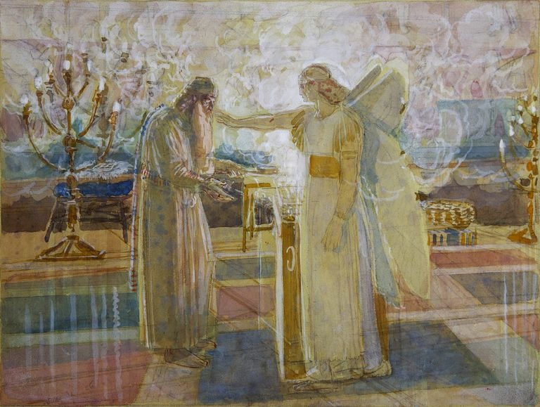 Amikor Zakariás egy alkalommal osztályának rendjében szolgálatot teljesített Isten színe előtt, ráesett a sors, hogy a papi szolgálat szokása szerint az Úr templomába menjen, és bemutassa a tömjénáldozatot.