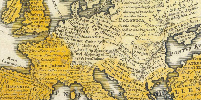 egy Európa nyelvi sokszínűségét bemutató térképen (1741)