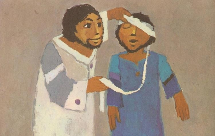Jézus megállt, és így szólt: „Hívjátok ide!” Odaszóltak a vaknak: „Bátorság! Gyere, téged hív!” Az eldobta köntösét, felugrott és odament Jézushoz. Jézus megkérdezte: „Mit akarsz, mit tegyek veled?”