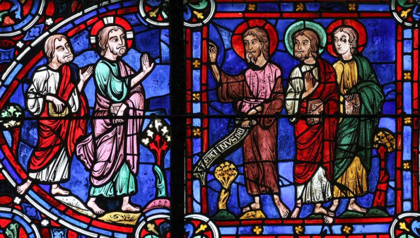 Azok ezt felelték; „Rabbi – ami annyit jelent, hogy Mester –, hol laksz?” „Jöjjetek, nézzétek meg!” – mondta nekik. Elmentek tehát vele, megnézték, hogy hol lakik, és aznap nála maradtak. Ez a tizedik óra körül volt. A kettő közül, akik hallották ezt Jánostól és követték (Jézust), az egyik András volt, Simon Péter testvére. Ő először testvérével, Simonnal találkozott, és szólt neki: „Megtaláltuk a Messiást, vagy más szóval a Fölkentet”, és elvitte Jézushoz. Jézus rátekintett, és így szólt hozzá: „Te Simon vagy, János fia, de Kéfásnak, azaz Péternek fognak hívni.”
