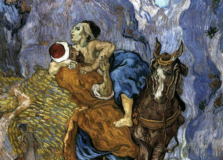Abban az időben egy törvénytudó odalépett Jézushoz, hogy próbára tegye őt. „Mester – szólította meg –, mit tegyek, hogy elnyerjem az örök életet?” Jézus így felelt: „Mit mond erről a törvény? Mit olvasol benne?” A törvénytudó így válaszolt: „Szeresd Uradat, Istenedet teljes szívedből, teljes lelkedből, teljes erődből és teljes elmédből, felebarátodat pedig mint saját magadat.” Jézus ezt mondta neki: „Helyesen feleltél. Tedd ezt, és élni fogsz.” A törvénytudó igazolni akarta magát, ezért megkérdezte Jézustól: „De hát ki az én felebarátom?” Válaszul Jézus ezt mondta neki: „Történt, hogy egy ember Jeruzsálemből lement Jerikóba. Rablók kezébe került. Ezek kifosztották, véresre verték, és félholtan otthagyták. Egyszer csak egy pap jött lefelé az úton. Észrevette, de elment mellette. Azután egy levita jött arra, ő is meglátta, de elment mellette. Végül egy szamaritánusnak is arra vitt az útja. Amikor megpillantotta, megesett rajta a szíve. Odament hozzá, olajat és bort öntött sebeire, és bekötözte, majd pedig felültette teherhordó állatára, elvitte egy vendégfogadóba, és gondoskodott róla. Másnap elővett két dénárt, odaadta a fogadósnak ezzel a kéréssel: »Viseld gondját, és ha többet költenél rá, visszatérve megadom neked.« Mit gondolsz, e három közül ki volt a felebarátja annak, aki a rablók kezébe került?” A törvénytudó így válaszolt: „Aki irgalmasságot cselekedett vele.” Jézus így folytatta: „Menj, és te is hasonlóképpen cselekedjél!”