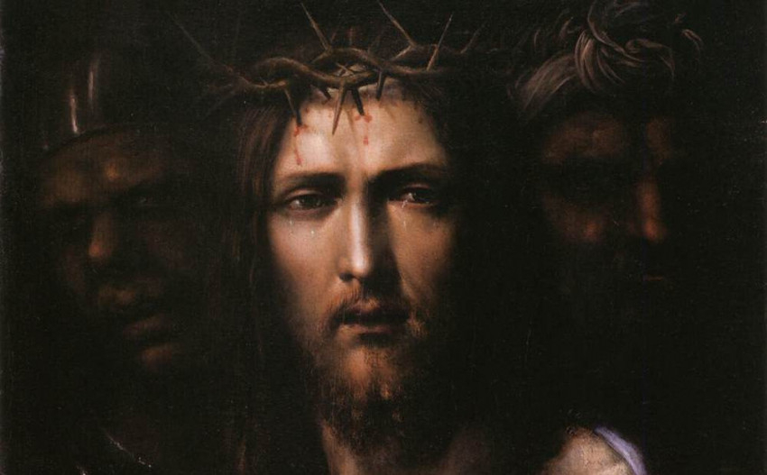 Ekkor Pilátus fogta Jézust és megostoroztatta. A katonák tövisből koszorút fontak, a fejére tették, és bíborszínű köntöst adtak rá. Azután eléje járultak és így gúnyolták: „Üdvöz légy, zsidók királya!” És közben arcul verték. Pilátus ezután újra kiment és így szólt hozzájuk: „Íme, elétek vezetem őt, hogy megtudjátok: nem találok benne semmi vétket.” És kijött Jézus, töviskoronával, bíborruhában. Pilátus pedig így szólt: „Íme, az embert” A főpapok és a szolgák, mihelyt meglátták őt, kiáltozni kezdtek: „Feszítsd meg! Feszítsd meg!” Pilátus azt mondta nekik: „Vigyétek, feszítsétek őt ti keresztre, mert én semmi vétket sem találok benne!” De a zsidók ezt felelték: „Nekünk törvényünk van, és a törvény szerint meg kell halnia, mert Isten fiává tette magát.” Amikor Pilátus meghallotta ezt, még jobban megijedt. Visszament a helytartóságra, és újra megkérdezte Jézust: „Honnan való vagy?” De Jézus nem válaszolt neki semmit. Erre Pilátus azt mondta neki: „Nem felelsz nekem? Talán nem tudod, hogy hatalmam van arra, hogy megfeszítselek, vagy arra, hogy elbocsássalak?” Erre Jézus azt mondta: „Semmi hatalmad sem volna fölöttem, ha onnan felülről nem kaptad volna. Ezért annak, aki engem a kezedbe adott, nagyobb a bűne.”